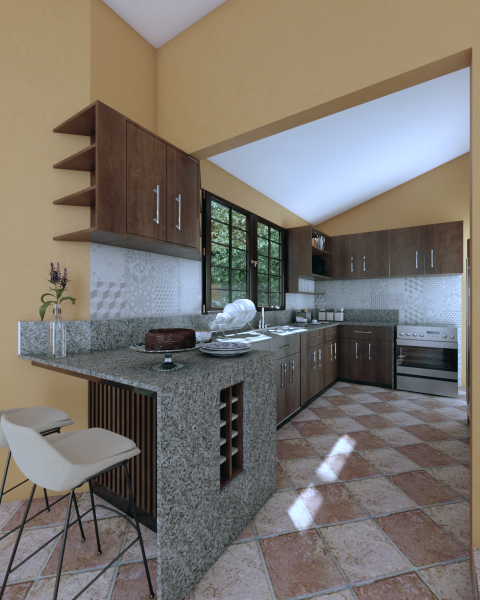 En este proyecto se buscaba revitalizar el espacio y dar un uso de apoyo al área de servicio y lavandería, dar buen uso al patio posterior y áreas cubiertas conectando estas zonas con habitaciones. Se propuso tener materiales neutros y el color blanco en paredes para contar con buena iluminación.